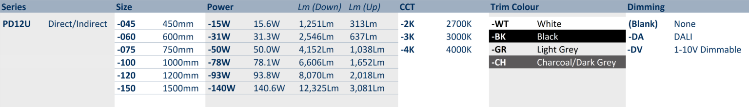 | Lumens | 1564 – 15,406Lm |