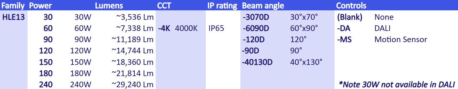 Along with performance levels greater than 120Lm/W and a rated life of L70 >50,000 hours, the LED Industrial Highbay also delivers beam distributions ideally suited for warehouse isles.