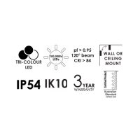 • 20W Tri-colour LED array – 3000K, 4000K or 6000K
